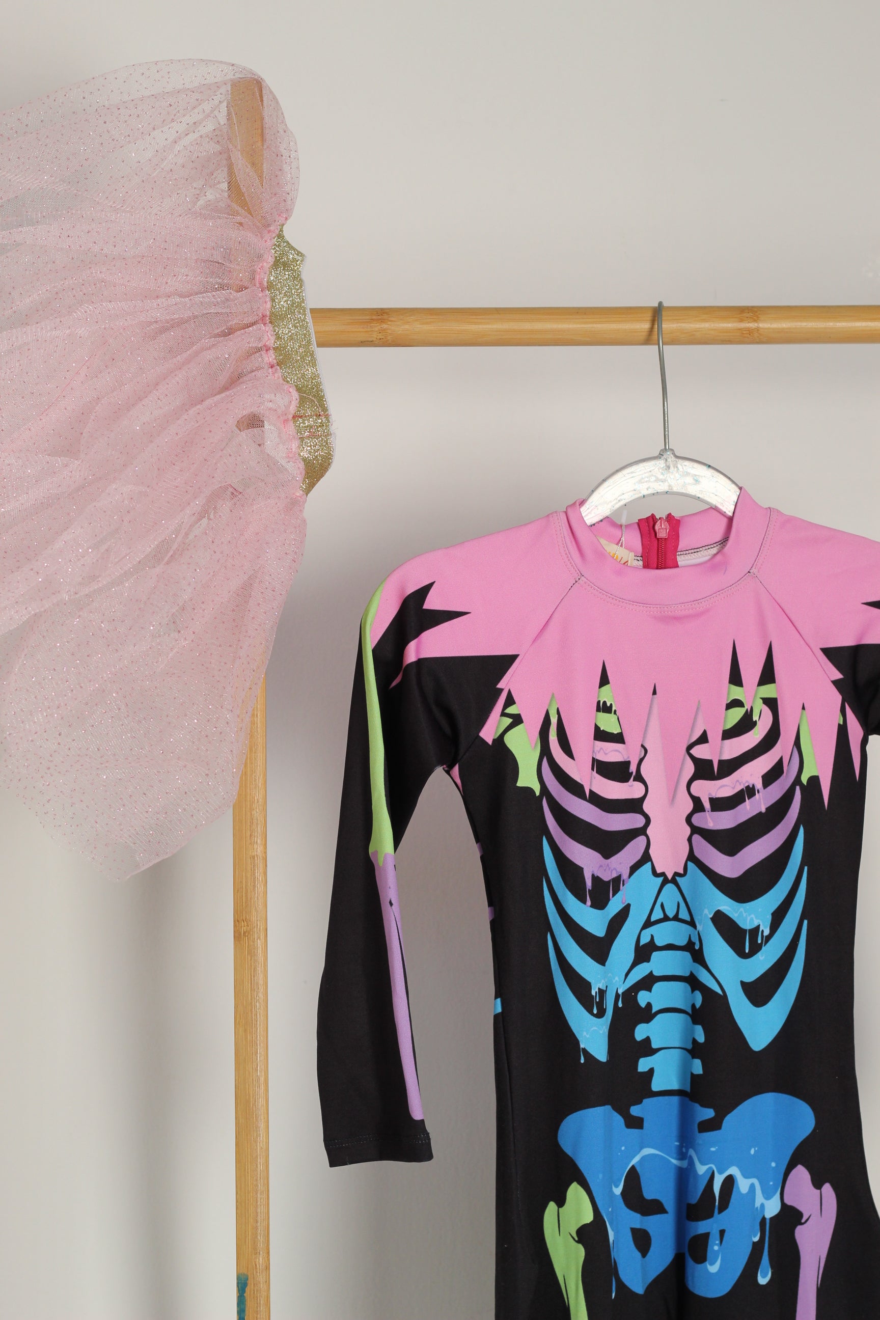 Conviértete en tu personaje favorito con este diseño de disfraz único inspirado en Calavera Rosa , confeccionado en tela elástica, cómoda y respirable . Perfecto para Halloween, fiestas temáticas o para lucir un look espeluznante pero lleno de color y estilo.
