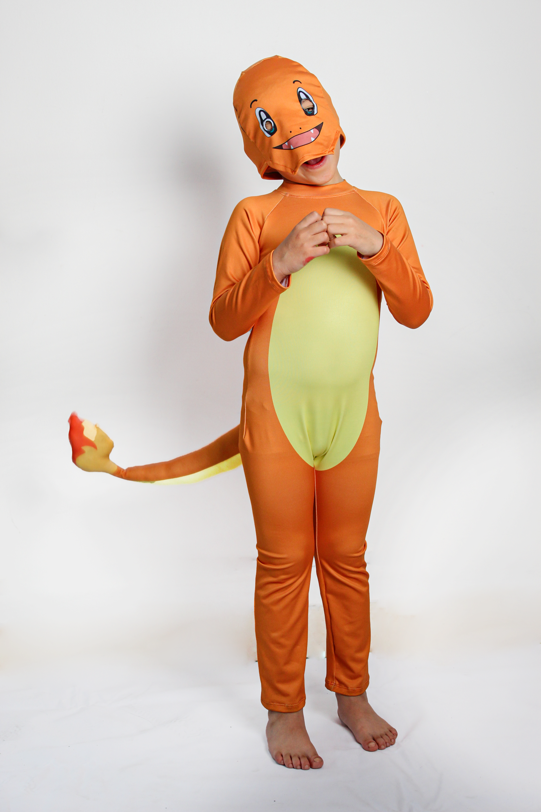 Conviértete en tu personaje favorito con este diseño de disfraz único inspirado en Charmander, hecho de tela elástica, cómoda y respirable. Perfecto para que los peques vivan aventuras llenas de energía y mucha diversión.