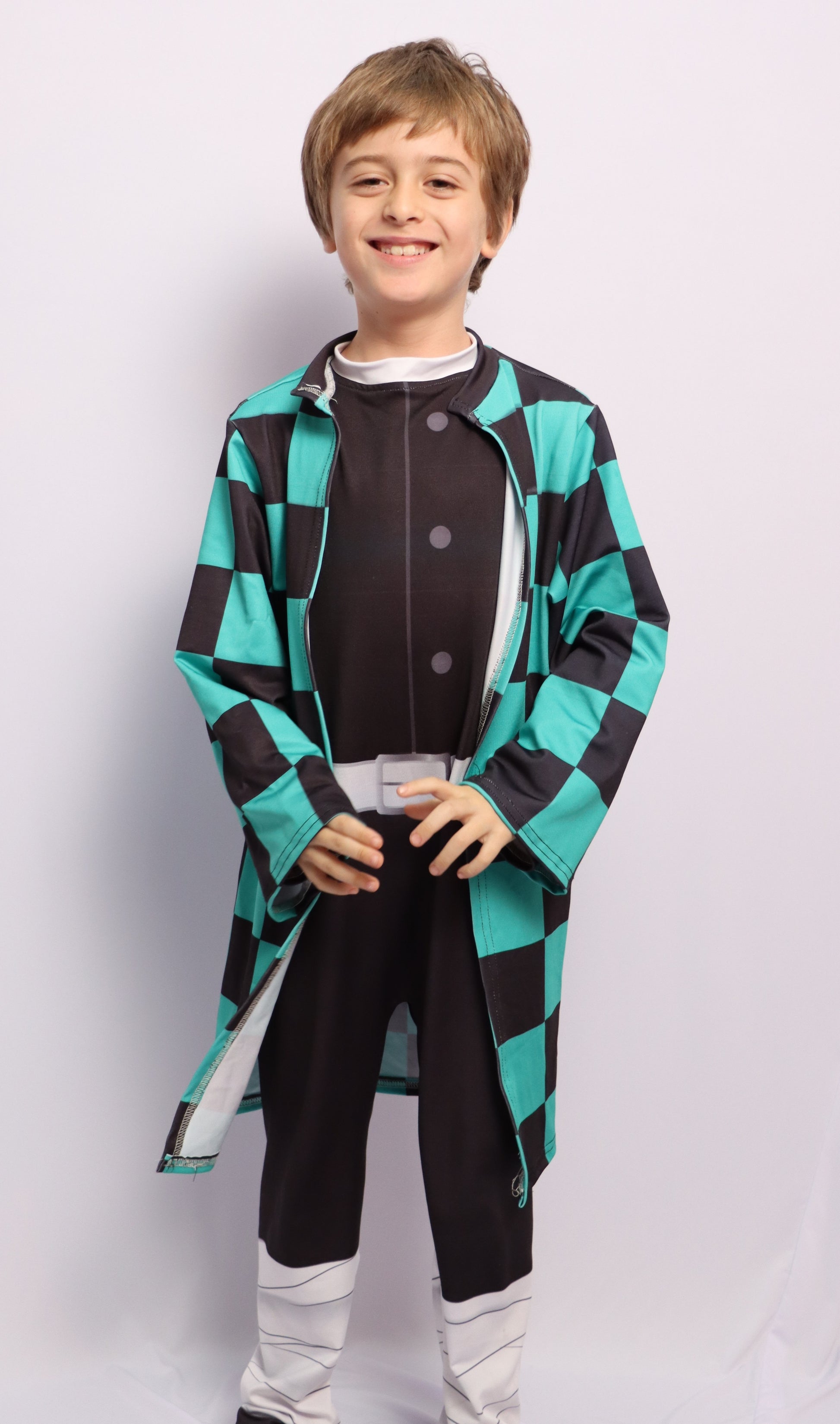 Conviértete en tu personaje favorito con este diseño de disfraz único inspirado en Tanjiro Kamado, hecho de tela elástica, cómoda y respirable. Perfecto para que los peques vivan aventuras llenas de energía y mucha diversión.