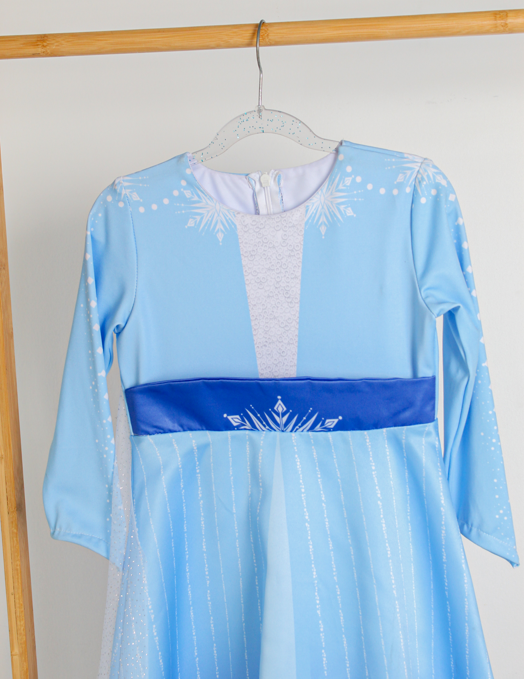 Conviértete en tu personaje favorito con este diseño de disfraz único inspirado en Elsa de Frozen, hecho de tela elástica, cómoda y respirable . Perfecto para que los pequeños vivan aventuras llenas de magia, dulzura y diversión.
