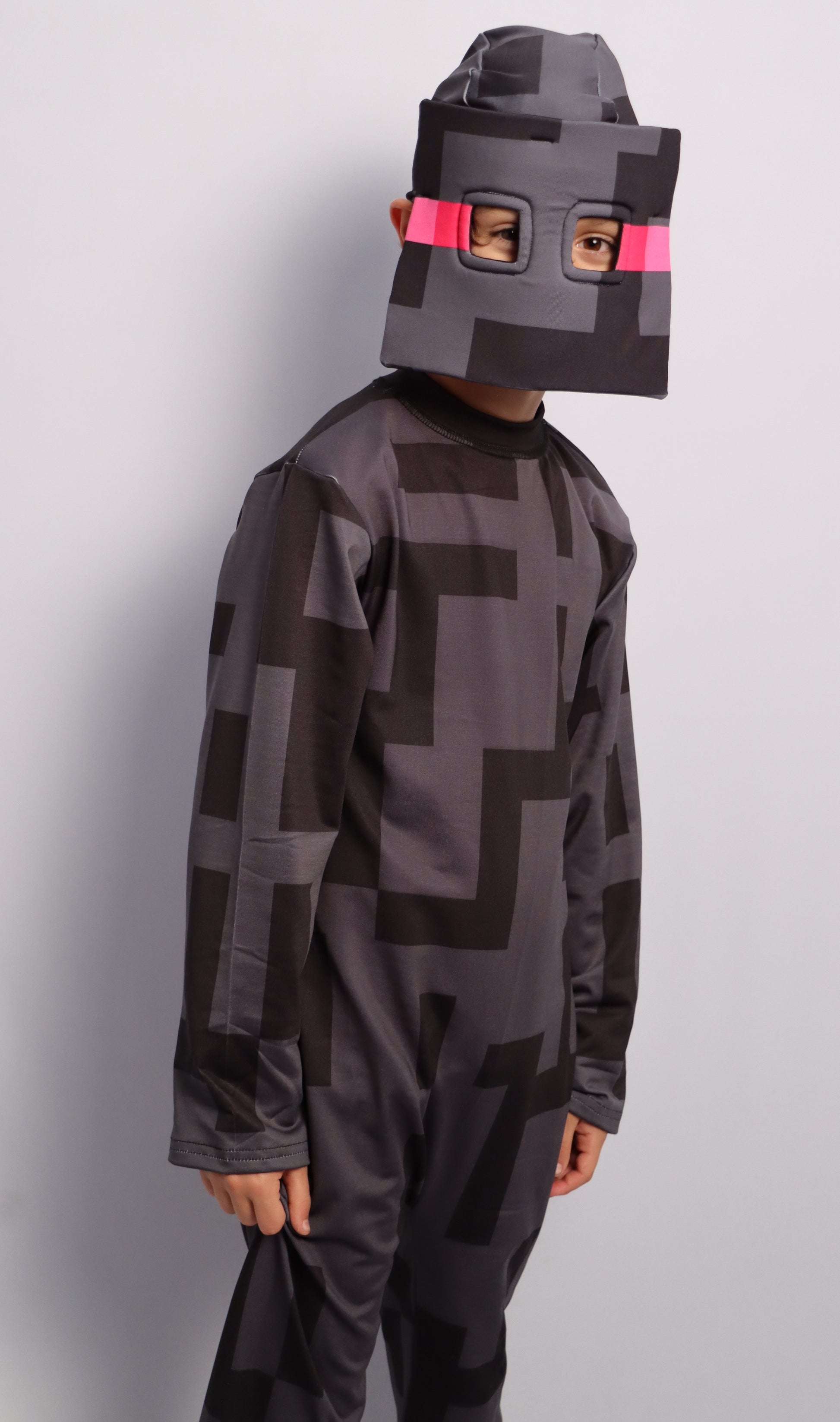 Conviértete en tu personaje favorito con este diseño de disfraz único inspirado en Enderman de Minecraft, hecho de tela elástica, cómoda y respirable. Perfecto para que los peques vivan aventuras llenas de energía y mucha diversión.