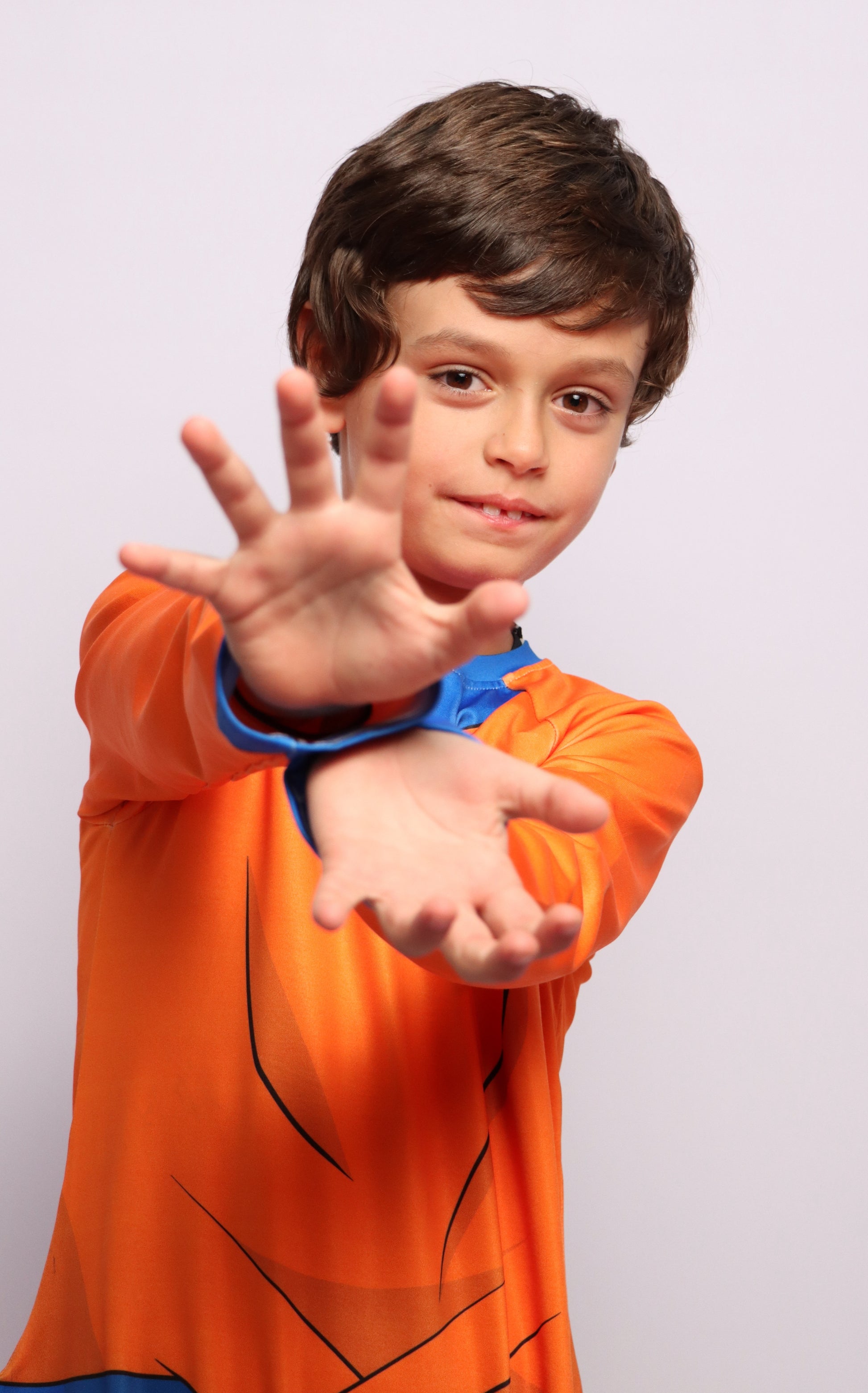 Conviértete en tu personaje favorito con este disfraz inspirado en Goku, perfecto para los pequeños guerreros que sueñan con entrenar, luchar y vivir aventuras llenas de energía.