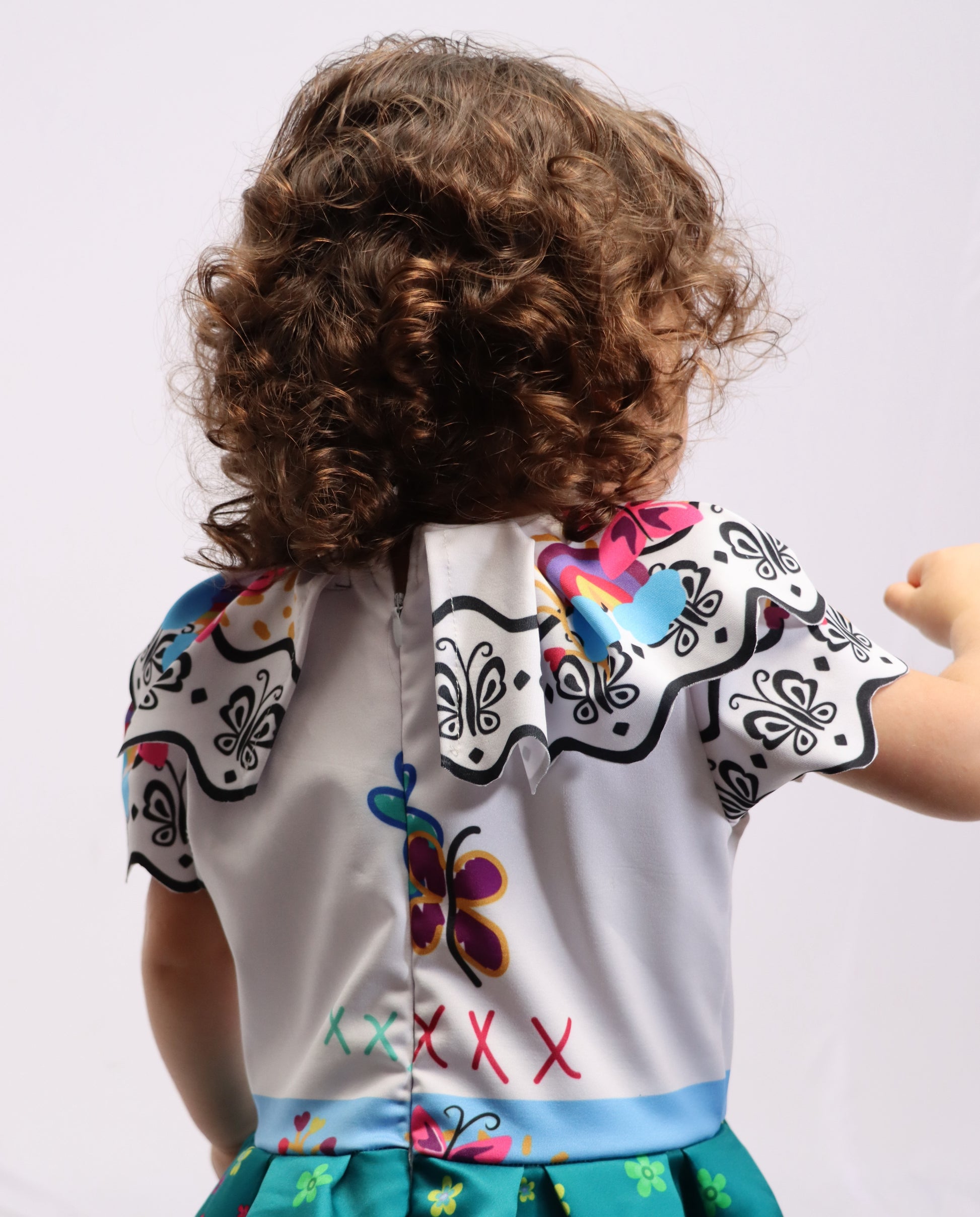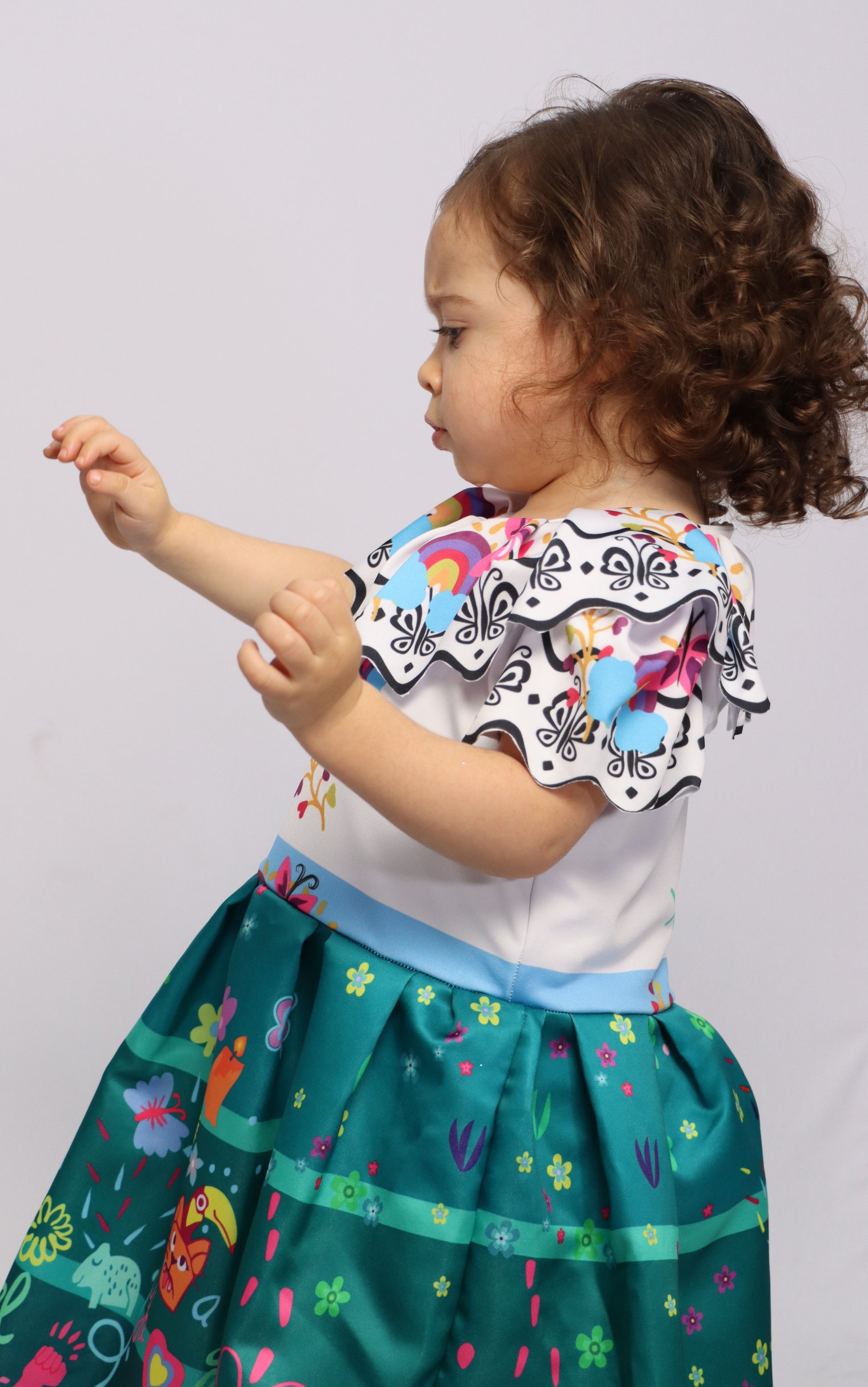 ¡Conviértete en tu personaje favorito con este encantador disfraz inspirado en Mirabel! Perfecto para que los pequeños jueguen, imaginen y vivan aventuras mágicas. Hecho en tela elástica, cómoda y respirable, que brinda total libertad de movimiento en cada momento.