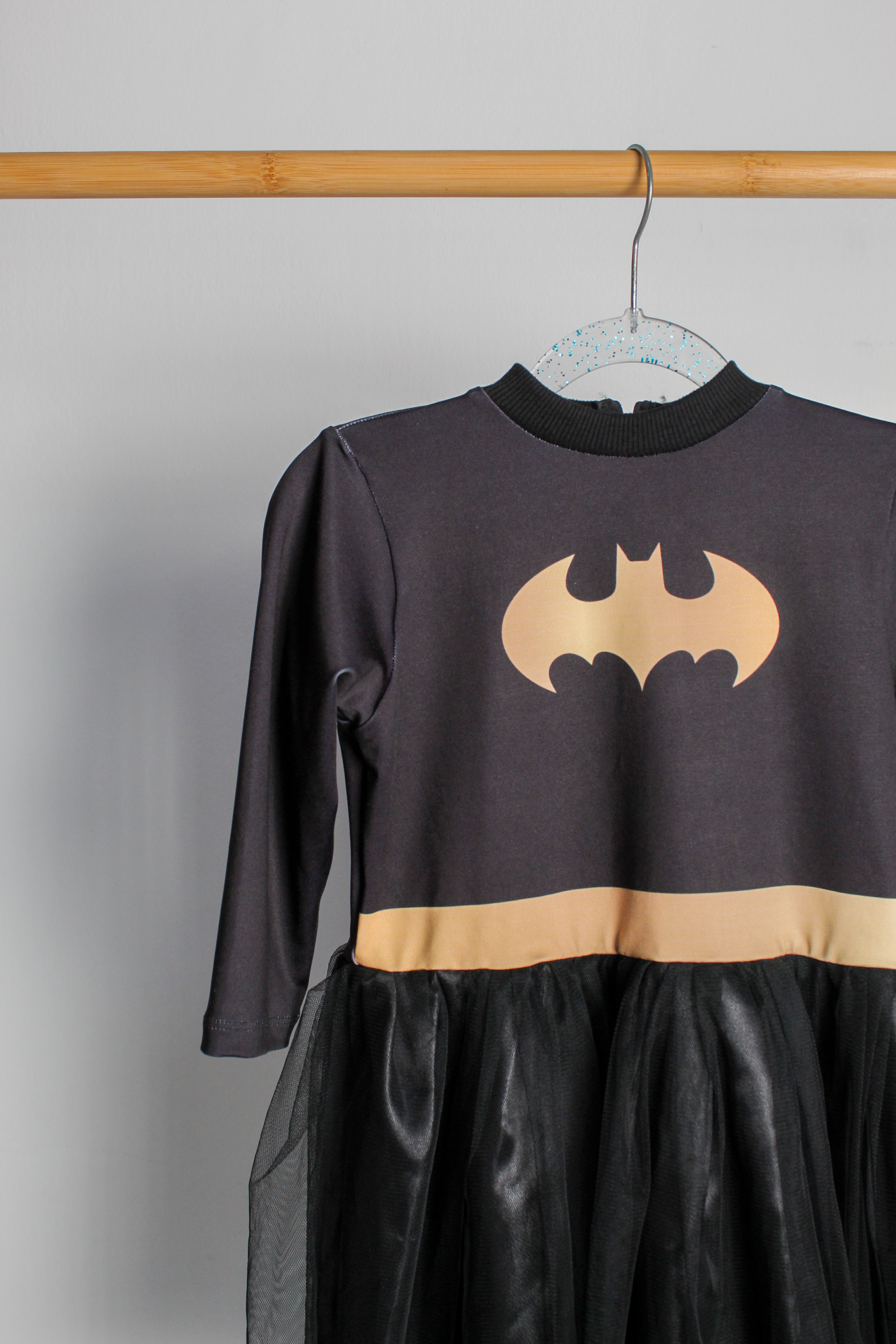 Conviértete en tu personaje favorito con este diseño de disfraz único inspirado en Batichica, confeccionado en tela elástica, cómoda y respirable. Su acabado con tul le da un toque especial que combina valentía y estilo, ideal para aventuras llenas de acción y diversión.